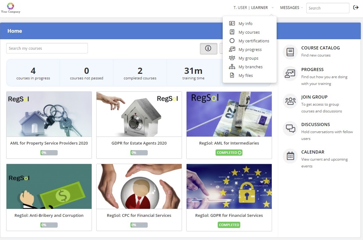 • Individual users have their own personalised login and homepage only showing their assigned courses.